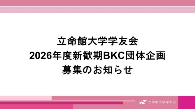 全学行事 2026年度新歓期BKC団体企画 2026年2月16日 立命館大学学友会 https://www.ritsumei.club/wp-content/uploads/2024/12/5aa6463c7e04a8f54e8950ff3b6b58bb.png 立命館大学学友会