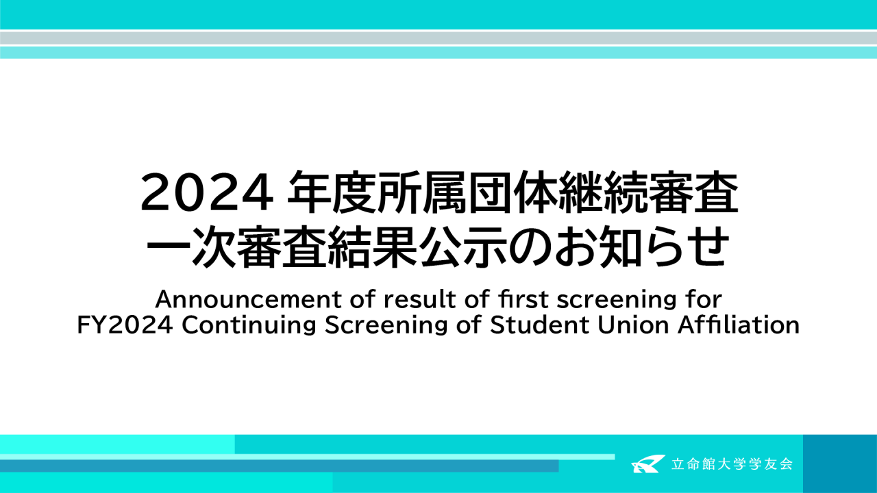 We announce the results of the initial screening for FY2024 Continuing Screening of Student Union Affiliation.