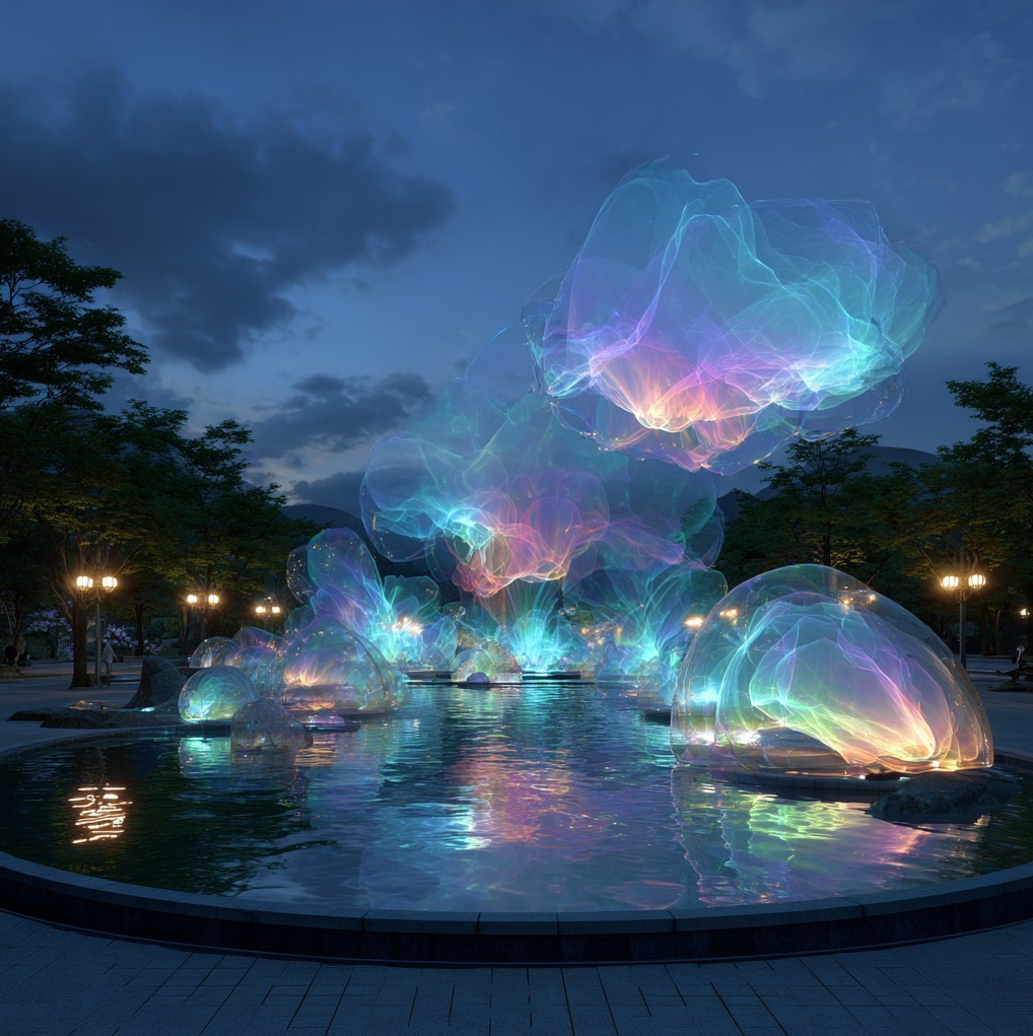 来場者の方の動きに応じて、噴水内に変化が起こる空間体験に参加できます。