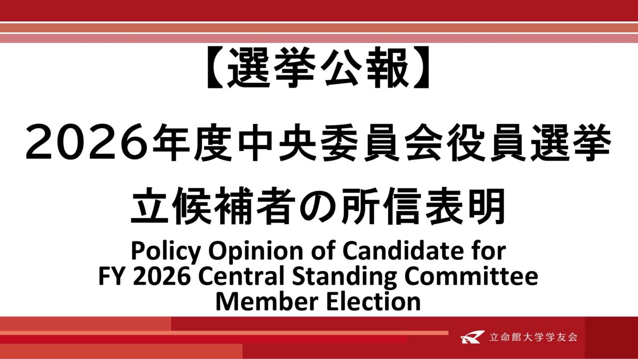 学友会中央選挙管理委員会より、2025年10月31日に公示した2026年度中央委員会役員選挙立候補者の所信表明を公表いたします。