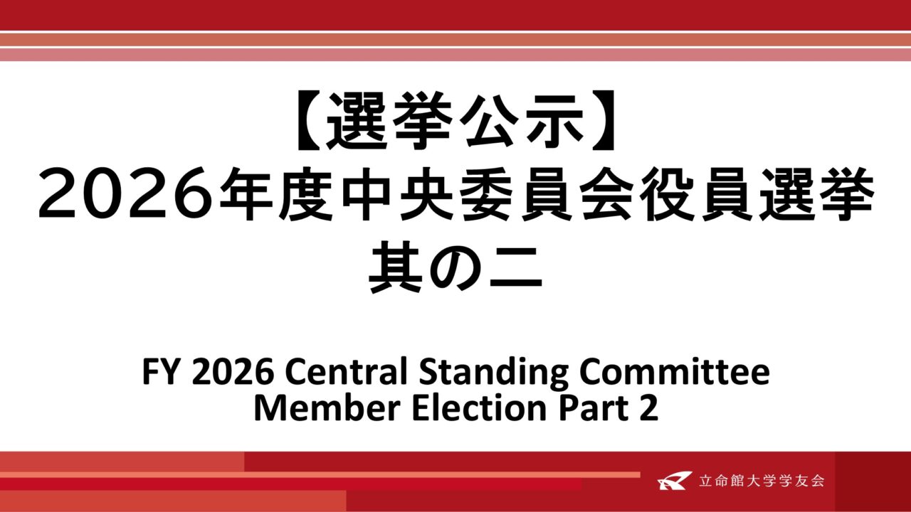 学友会中央選挙管理委員会より、2026年度立命館大学学友会 中央委員会役員選挙を公示します。