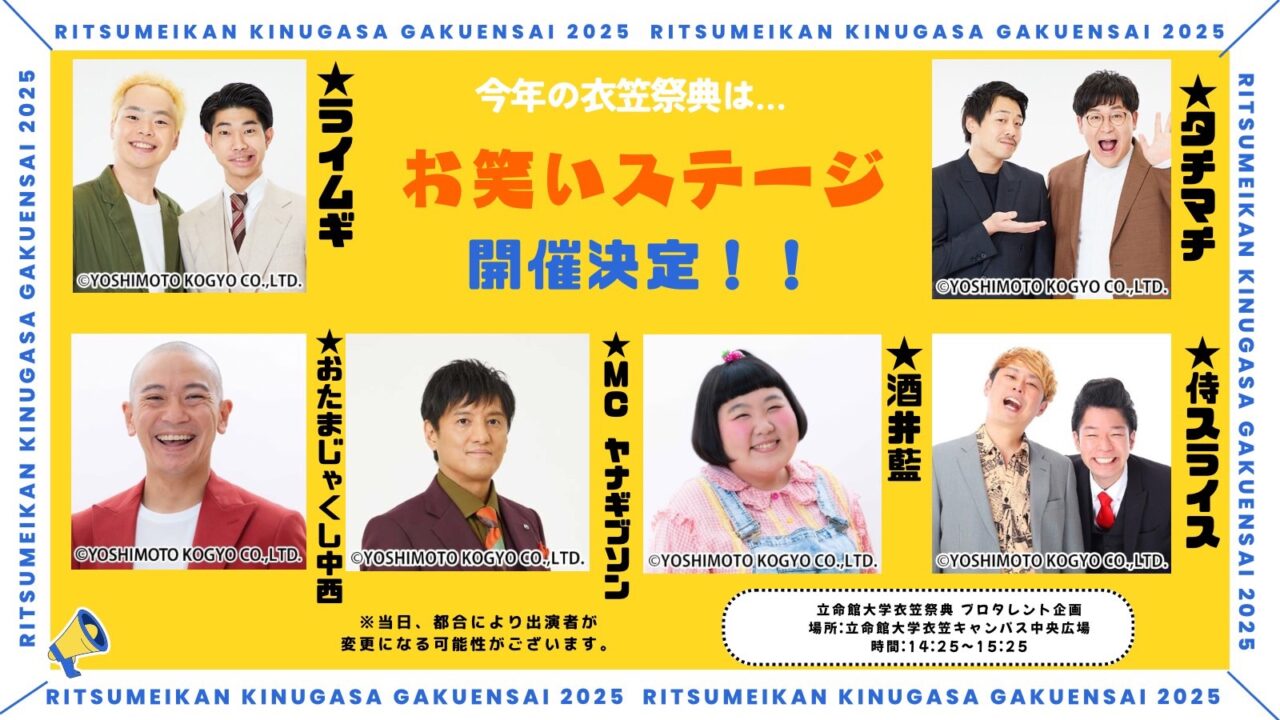 12/7の立命館大学衣笠祭典ではプロタレント企画を実施します!