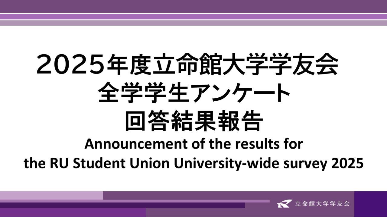 本アンケートは、2025年6月23日(月)〜2025年7月15日(火)に立命館大学学友会学園振興委員会が実施した、立命館大学の全学部生対象のアンケートの結果になります。