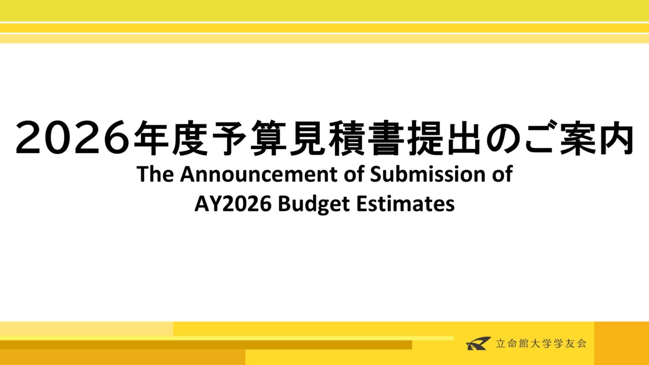 2026年度の代表、及び会計は出席を必須とし、それに準ずる役員の方ならびに予算見積書の策定に関わった方もお越しいただければ幸いです。